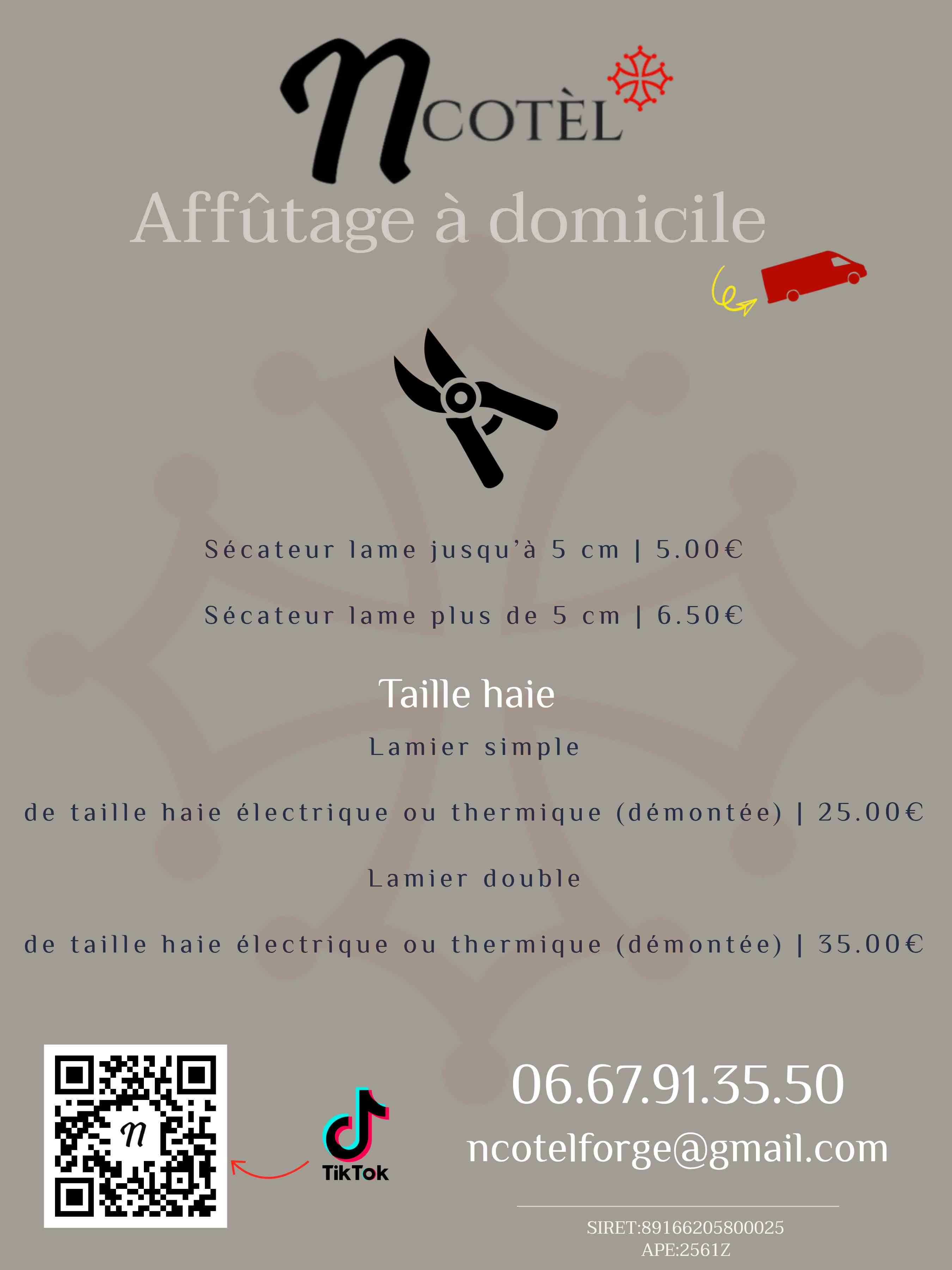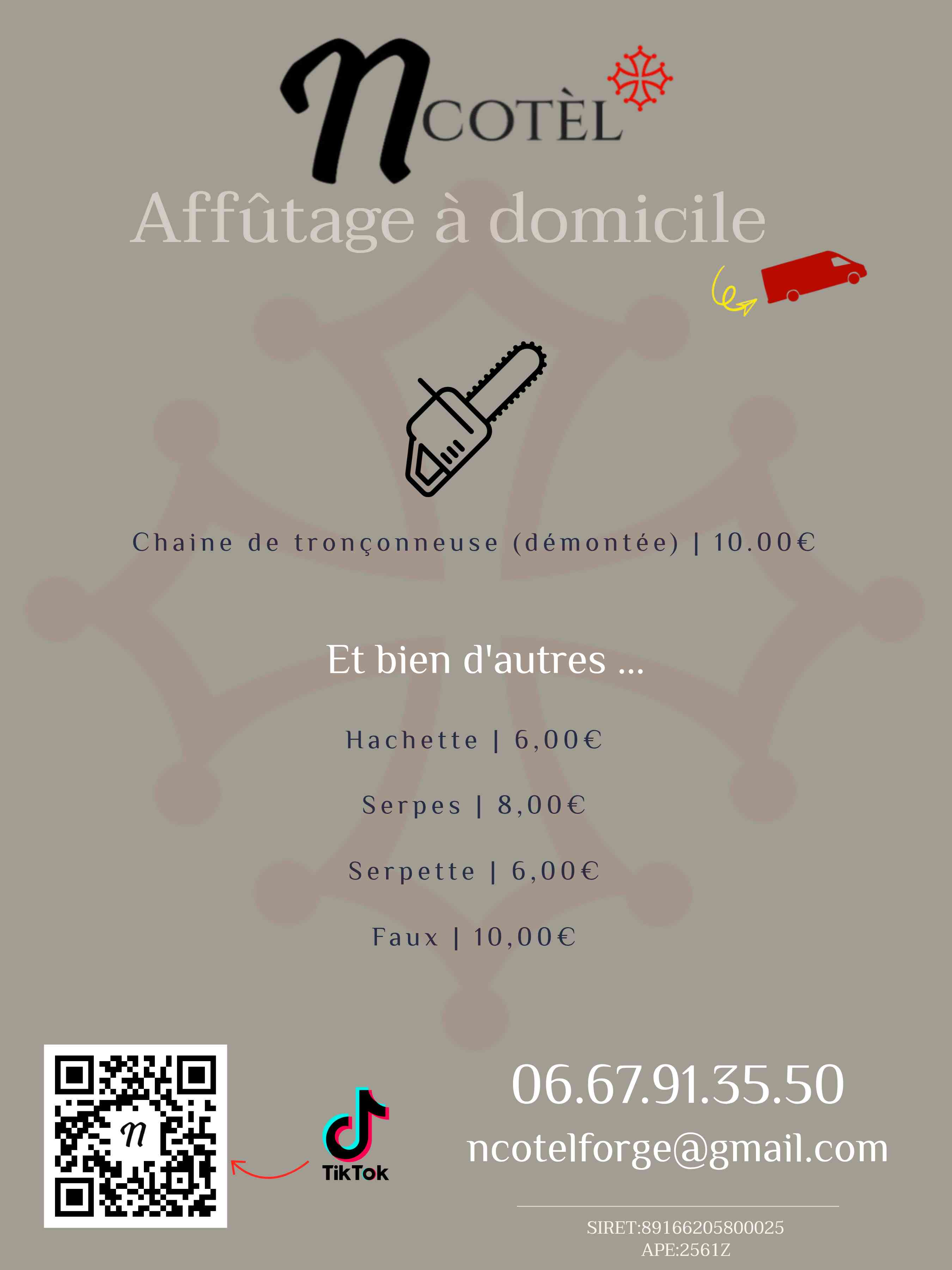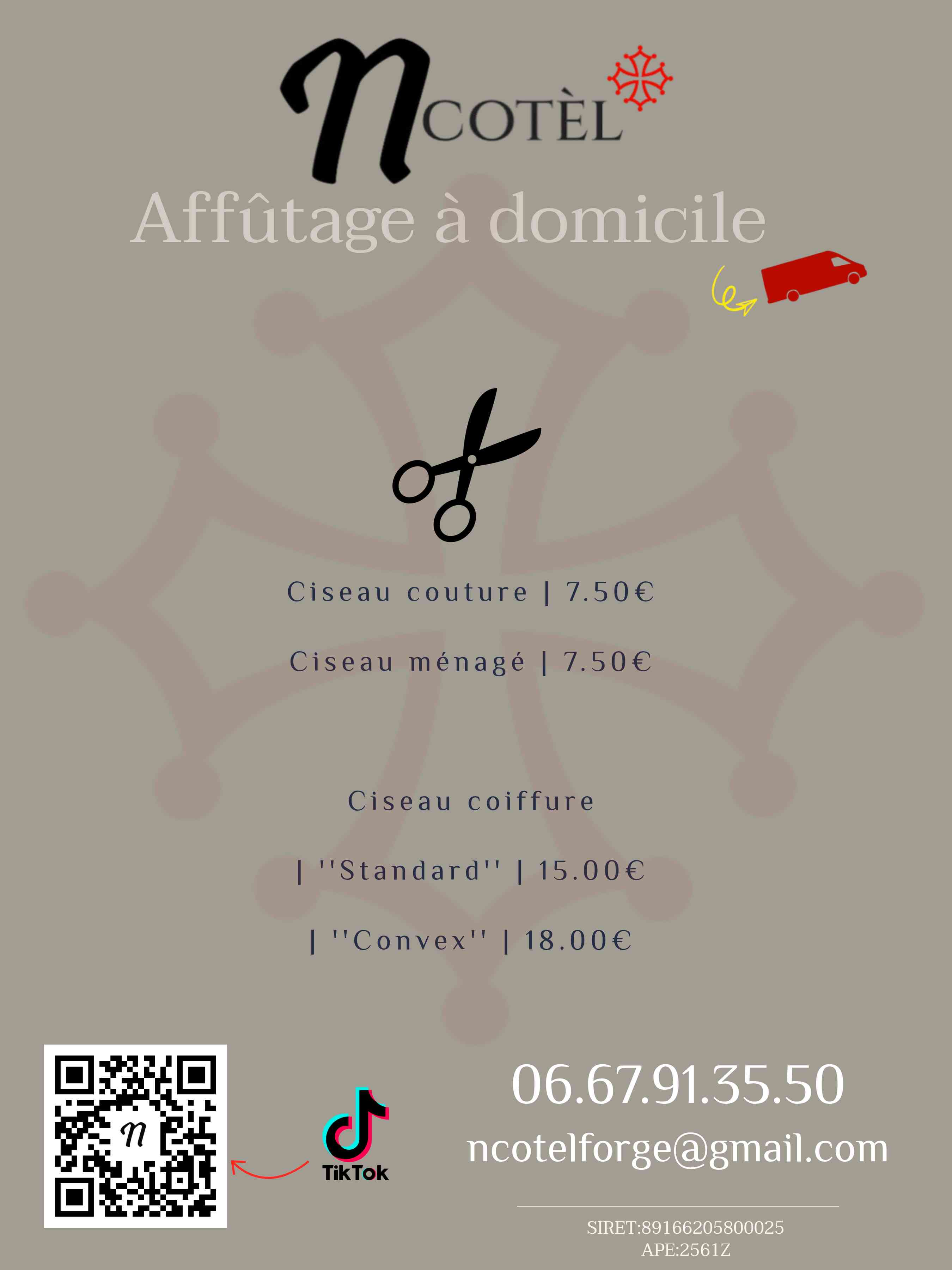 Découvrez chez Ncotèl, votre artisan métallier, forgeron et affûteur à Mazamet, des services d'exception. Que vous soyez professionnel ou amateur, nous mettons notre savoir-faire au service de vos outils et projets. Qualité, précision et un service irréprochable sont nos engagements. Plongez dans notre univers et voyez comment nous pouvons faire la différence.